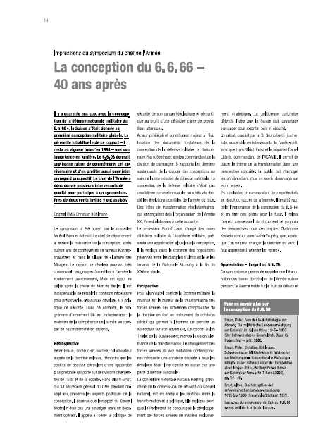 La conception du 6.6.66 40 ans après – impressions du symposium du chef de l’Armée Bühlmann Christian