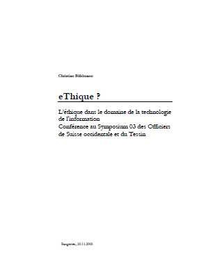 eThique ? L’éthique dans le domaine de la technologie de l’information